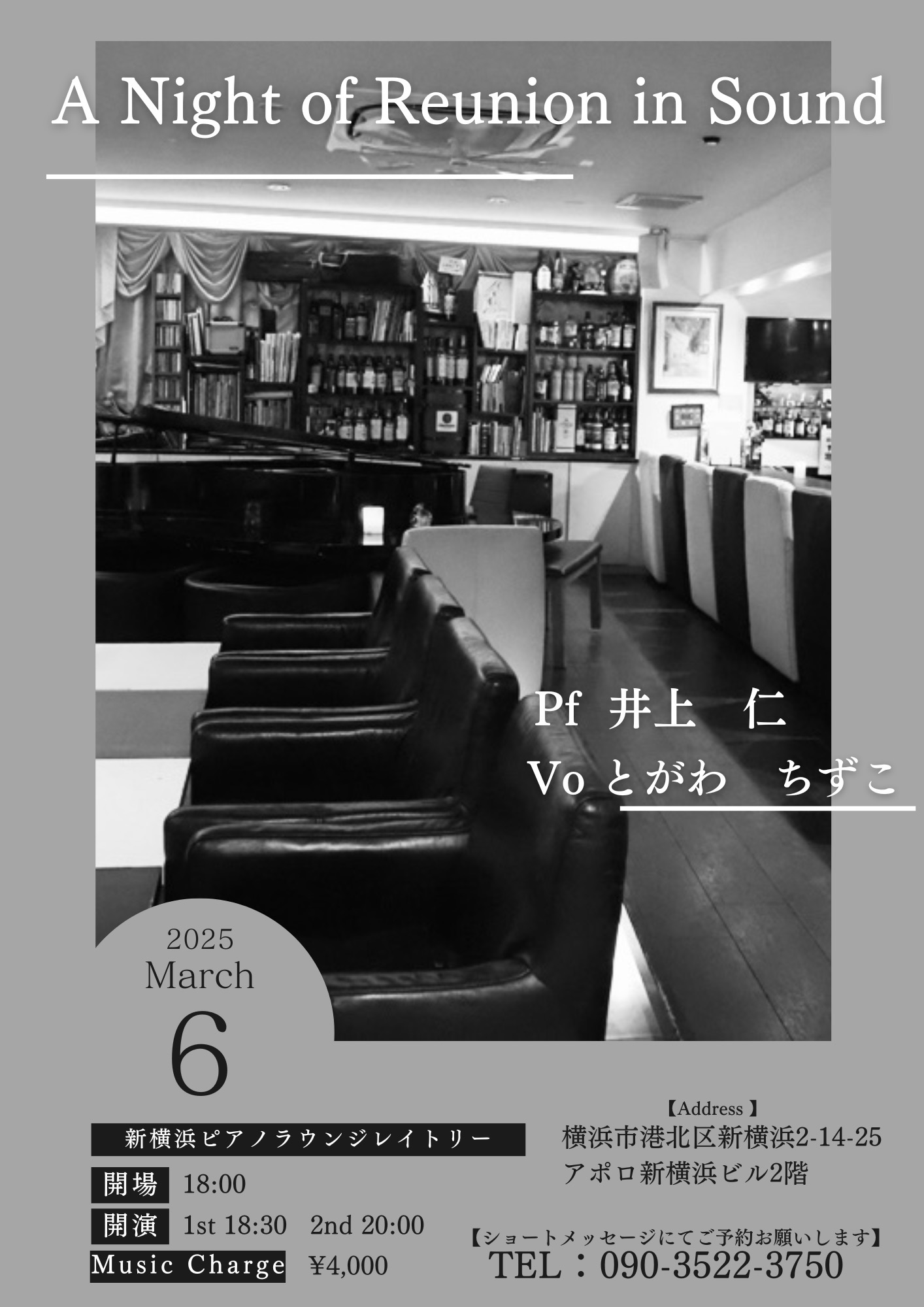 ピアニスト井上 仁さんとの、久しぶりのライブです。 ご予約お待ちしております。